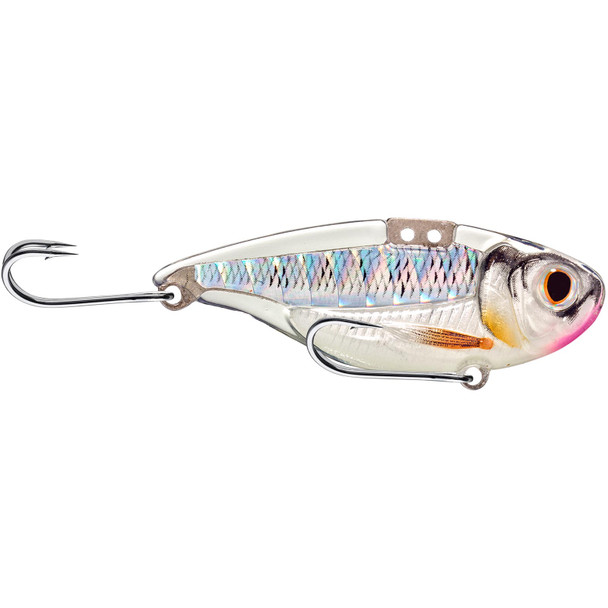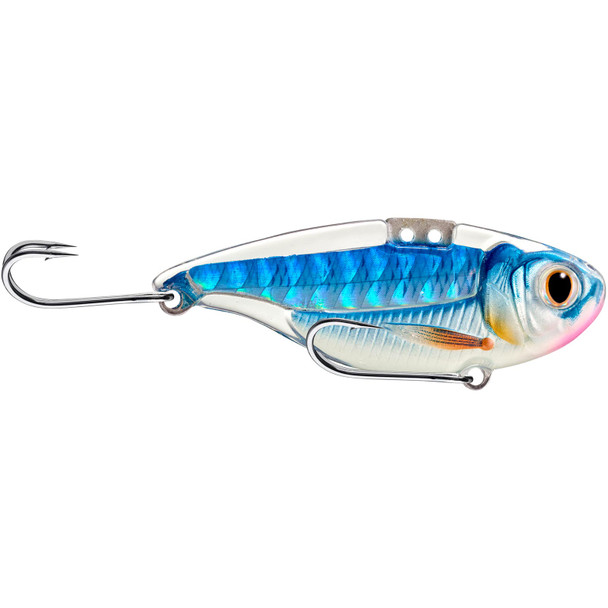 A LIVETARGET Sonic Shad Blade Bait reflects its full name very well. The baitfish lure mimics a young shad fleeing in distress not by any sparkling gleam from its surface but rather from an inner core that produces a lifelike strobing flash. You can alter the strobe effect of these LIVETARGET lures. Tie your leader to the forward line tie to generate a subtle vibration; tie to the rear to create an aggressive pulse and act as a live target that predators hunt.