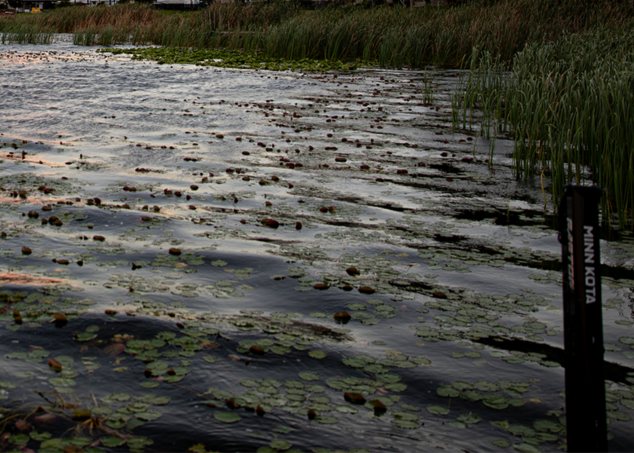 - June: Summer pattern. Frogs early/late over cheese; punch 1–1.25 oz through hyacinth or thick mats when the sun pins fish. Speed worms and chatterbaits stroke along eelgrass lines in wind.