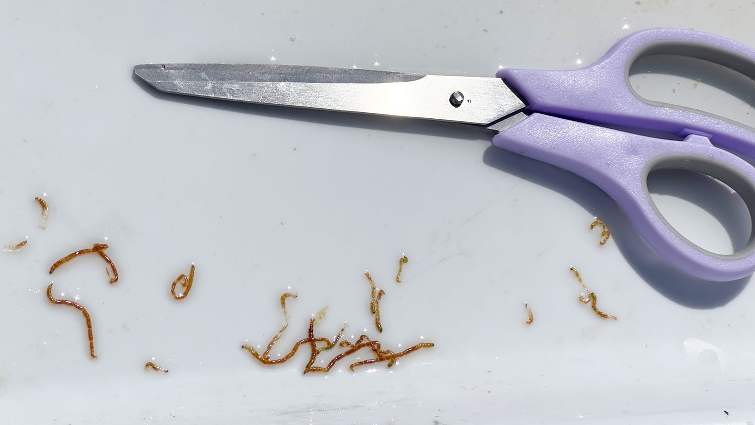 When we sampled bluegills last February on Kentucky Lake, we found their bellies full of chironomids. The gills can easily pluck these larvae out of moss on the lake bottom and cover, and it's a great food source with minimal effort. So small jigs and slender worms like the Trout Magnet Cross can often be a great place to start for artificial lures for panfish in cold waters. This can also be a time when small spoons work really well to tempt deep gills.