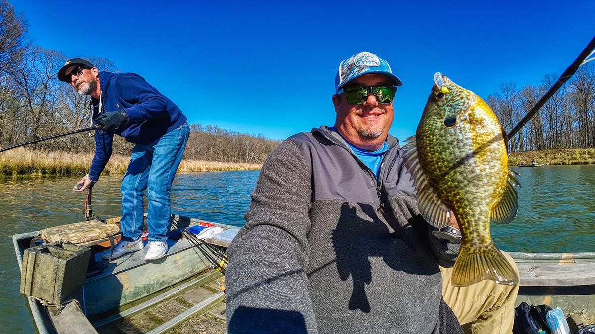 Then, as we move into the spring prespawn, they will be a lot more active, there will be more food sources in the systems with bug larvae starting to move towards hatches, and baitfish and microorganisms moving towards warmer banks and areas with cover. This is a time of year when the panfish are really trying to feed up for their spawn, and larger lures can often work well.