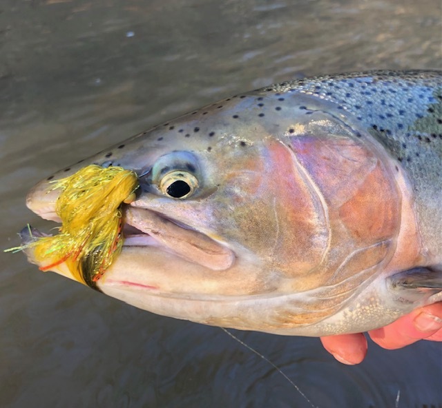 Often the take will feel like you may have snagged bottom and then the rod thumps slowly with a head shake, and if you're not bumping or snagging bottom occasionally, you're not putting the fly where it needs to be. Losing a big articulated fly to the bottom hurts a lot, especially from the time lost to create them. You might have a chance to save it if you can roll cast the floating portion of your line downstream from the hangup so that the current can pull it out. I’ve waded out to the top of my chest to save some of mine which leaves the thought that maybe I should be using something simpler to tie. Tube fly streamers immediately come to mind and might be just as effective in clearer water conditions.